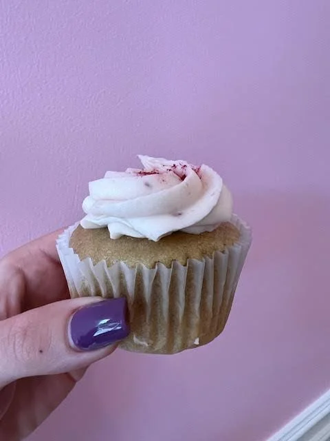 Raspberry Buttercream: Palm Shortening, Butter, Salt, Powdered Sugar, Raspberry preserves, Vanilla Extract, Whole Milk